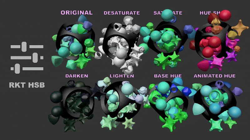 RKT HSB Modifier: opens the door to parametrically modifying your colors with Hue, Saturation, and Brightness Sliders.